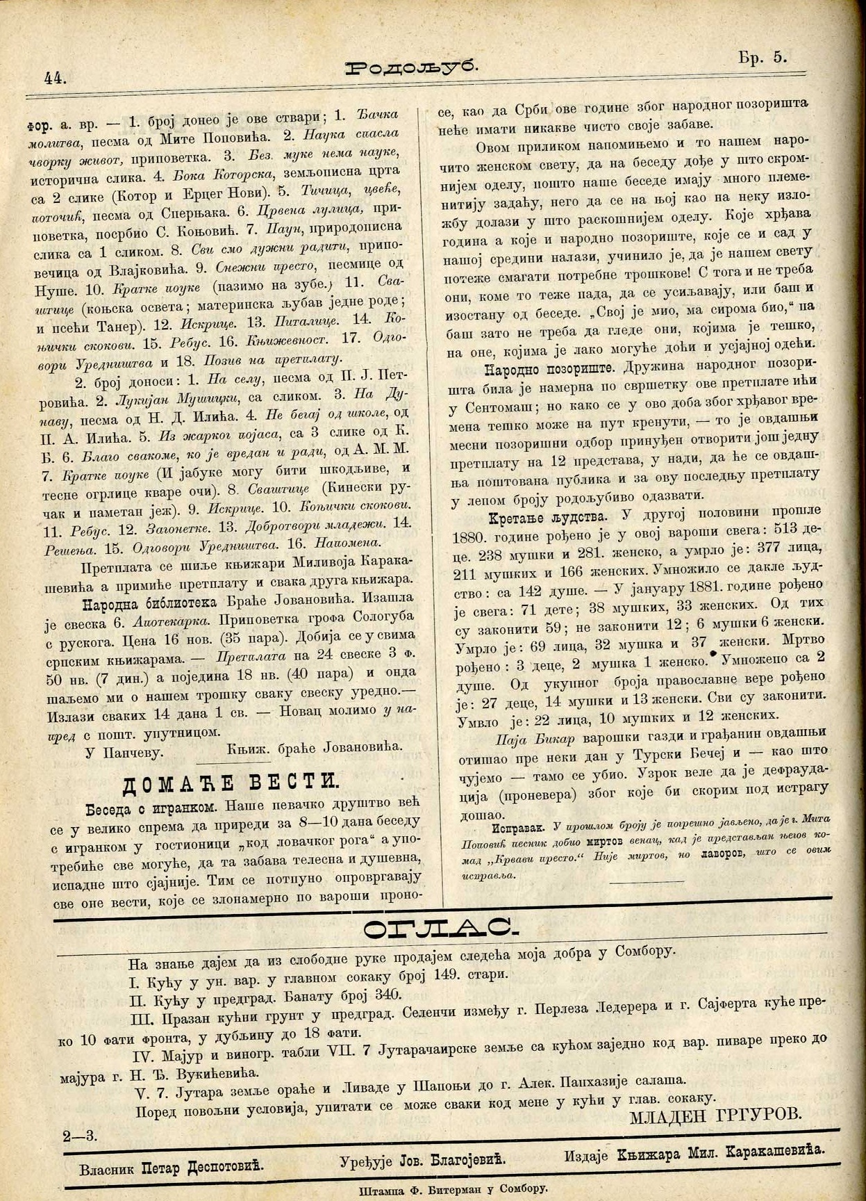 Datum izdavanja: 1. 2. 1881. , Broj: 5