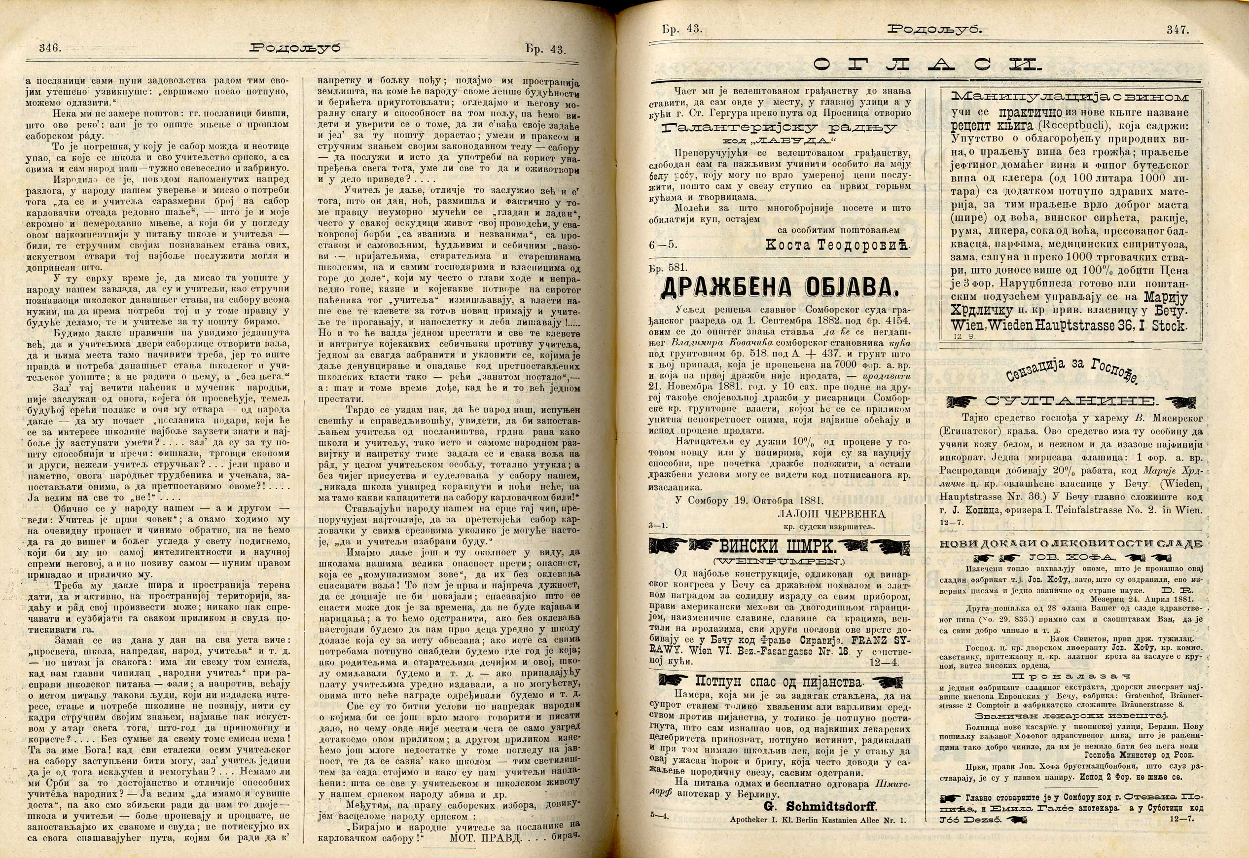 Datum izdavanja: 25. 10. 1881. , Broj: 43