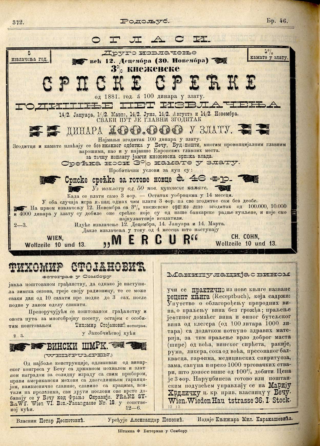 Datum izdavanja: 15. 11. 1881. , Broj: 46