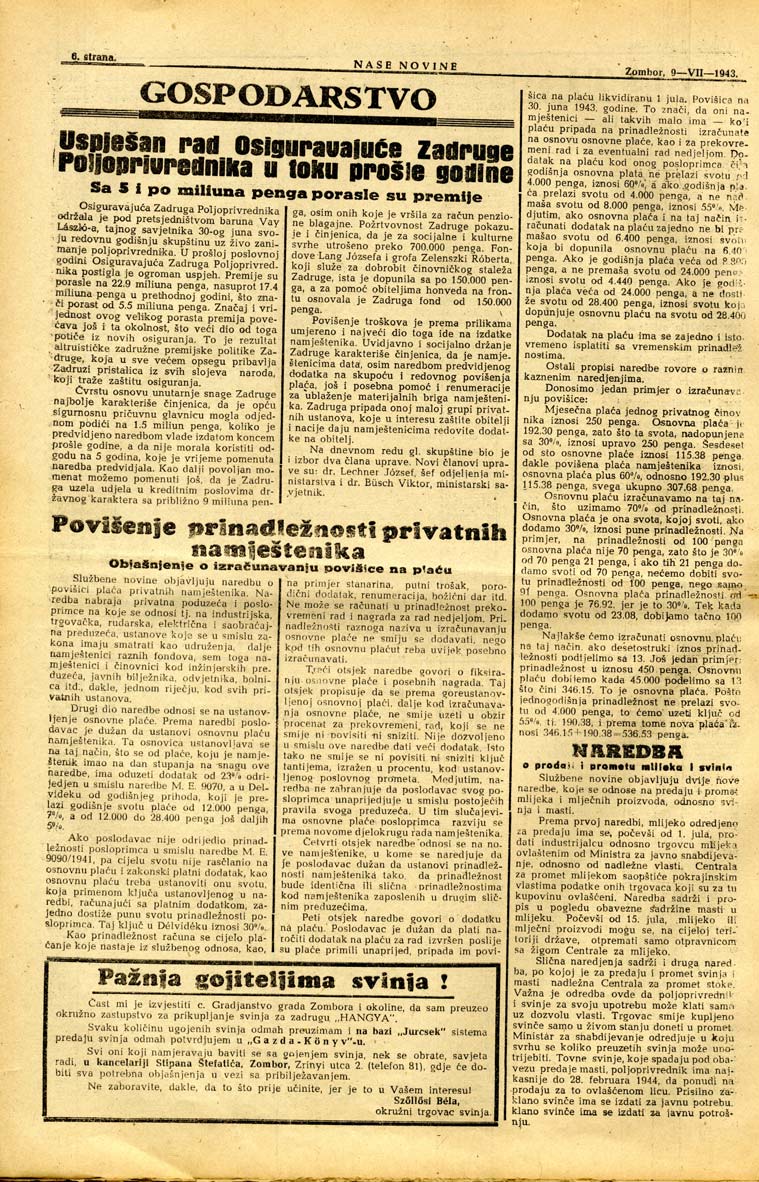Datum izdavanja: 9. 7. 1943. , Broj: 15