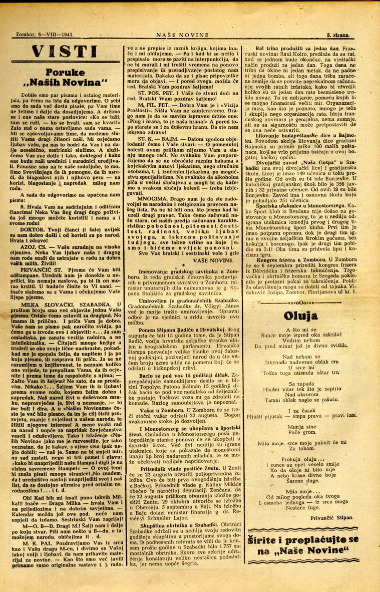 Datum izdavanja: 13. 8. 1943. , Broj: 20