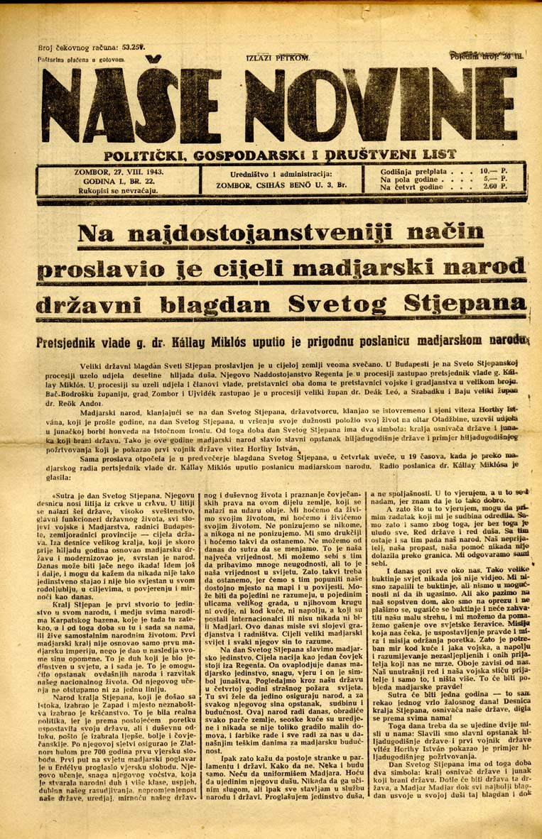Datum izdavanja: 27. 8. 1943. , Broj: 22