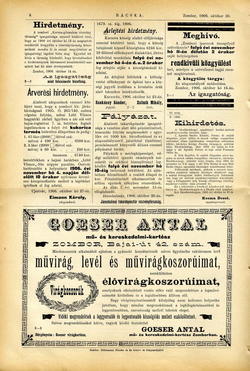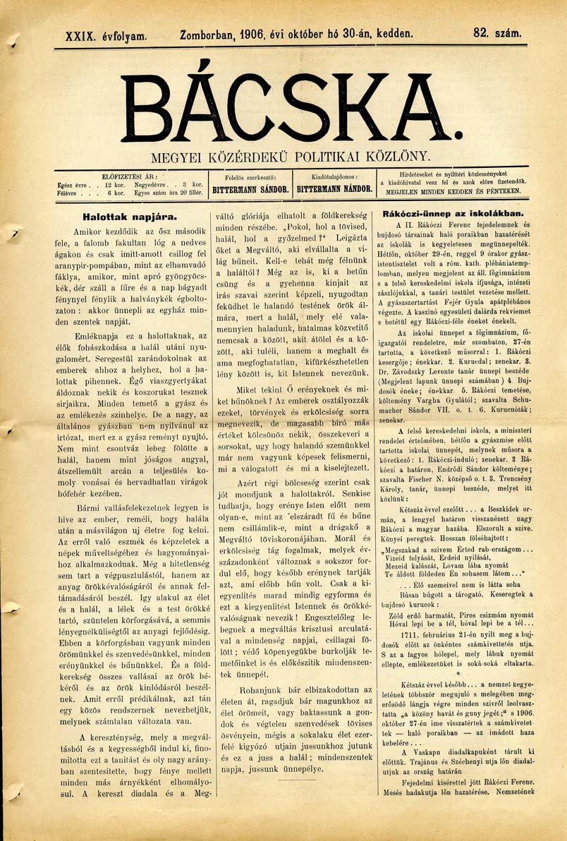Datum izdavanja: 30. 10. 1906. , Broj: 82