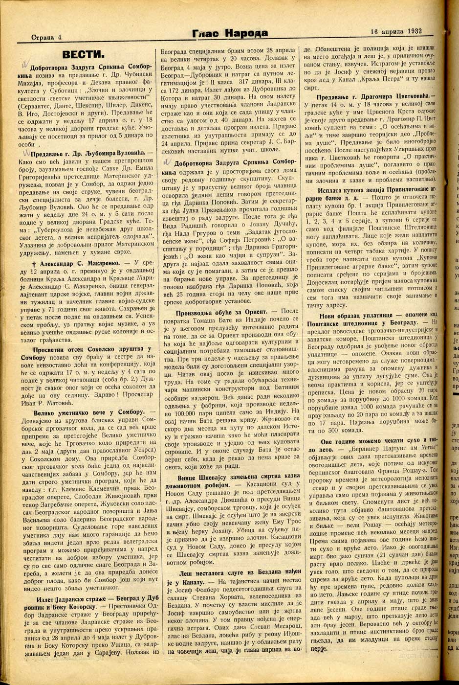 Datum izdavanja: 16. 4. 1932. , Broj: 16