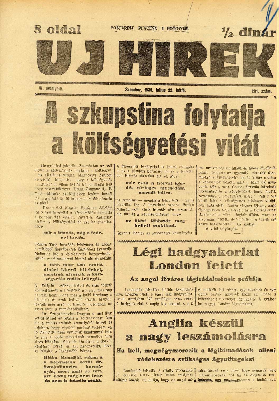 Datum izdavanja: 22. 7. 1935. , Broj: 201