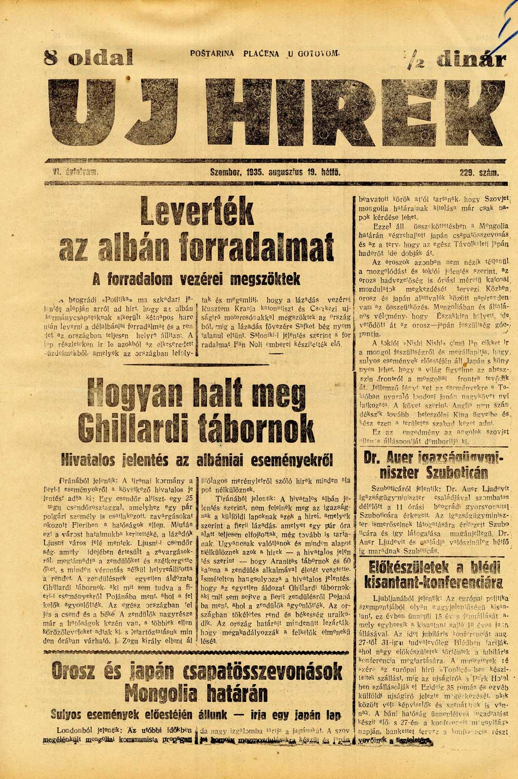 Datum izdavanja: 19. 8. 1935. , Broj: 229