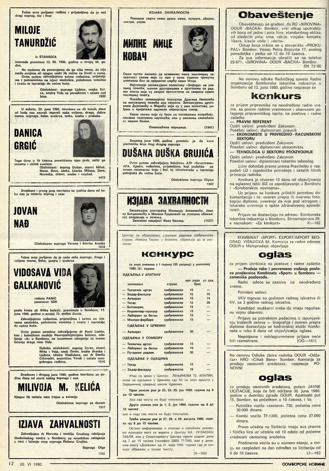Datum izdavanja: 20. 6. 1980. , Broj: 1350