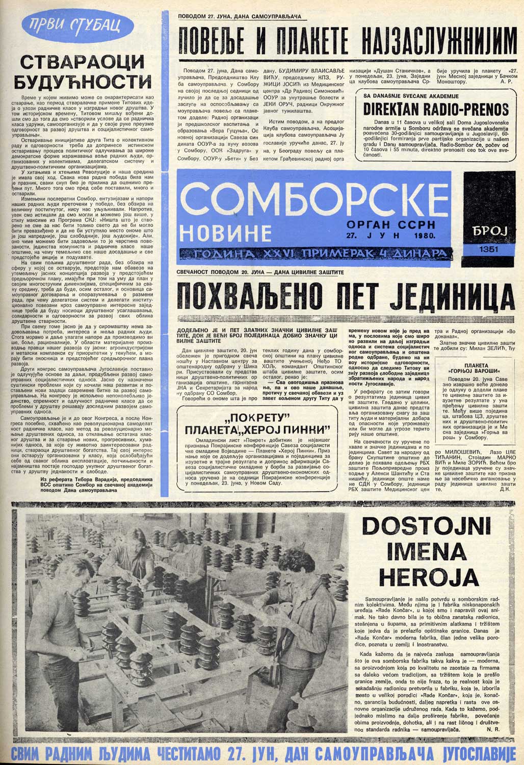 Datum izdavanja: 27. 6. 1980. , Broj: 1351