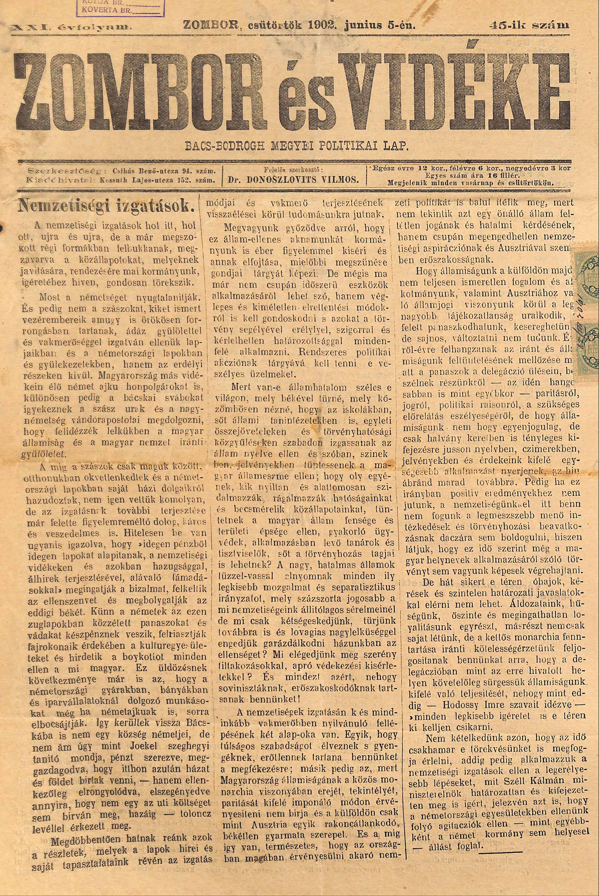 Datum izdavanja: 5. 6. 1902. , Broj: 45