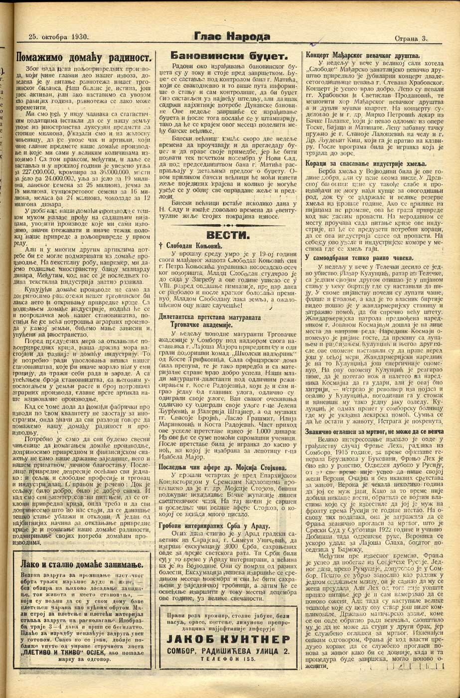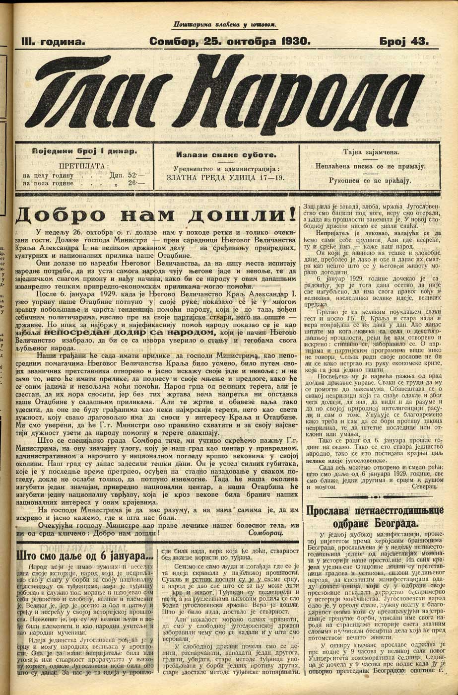 Datum izdavanja: 25. 10. 1930. , Broj: 43
