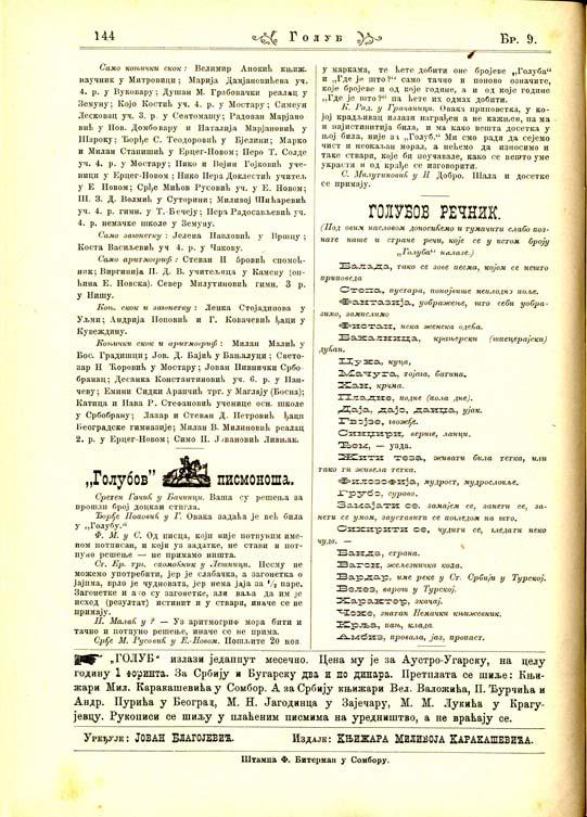 Datum izdavanja: 1. 9. 1885. , Broj: 9