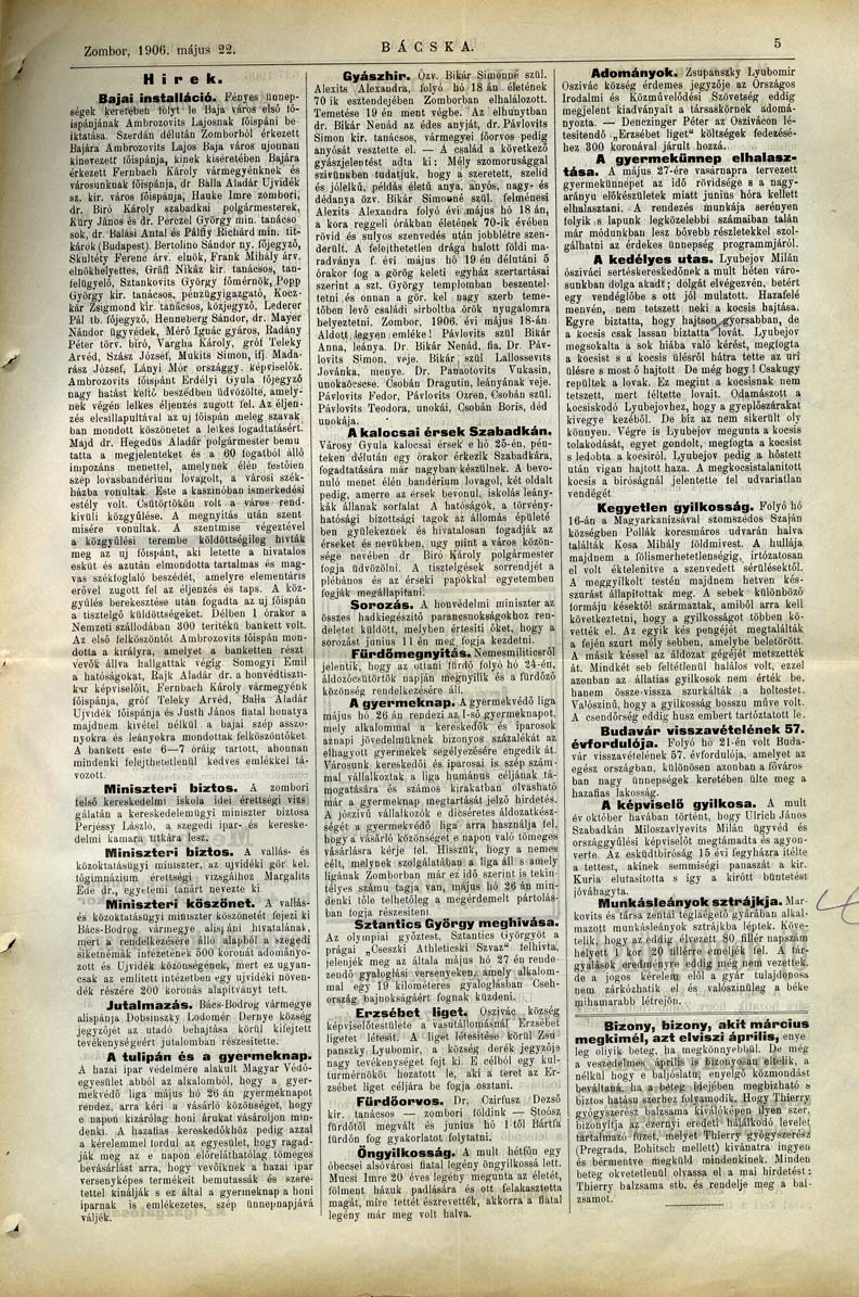 Datum izdavanja: 22. 5. 1906. , Broj: 39