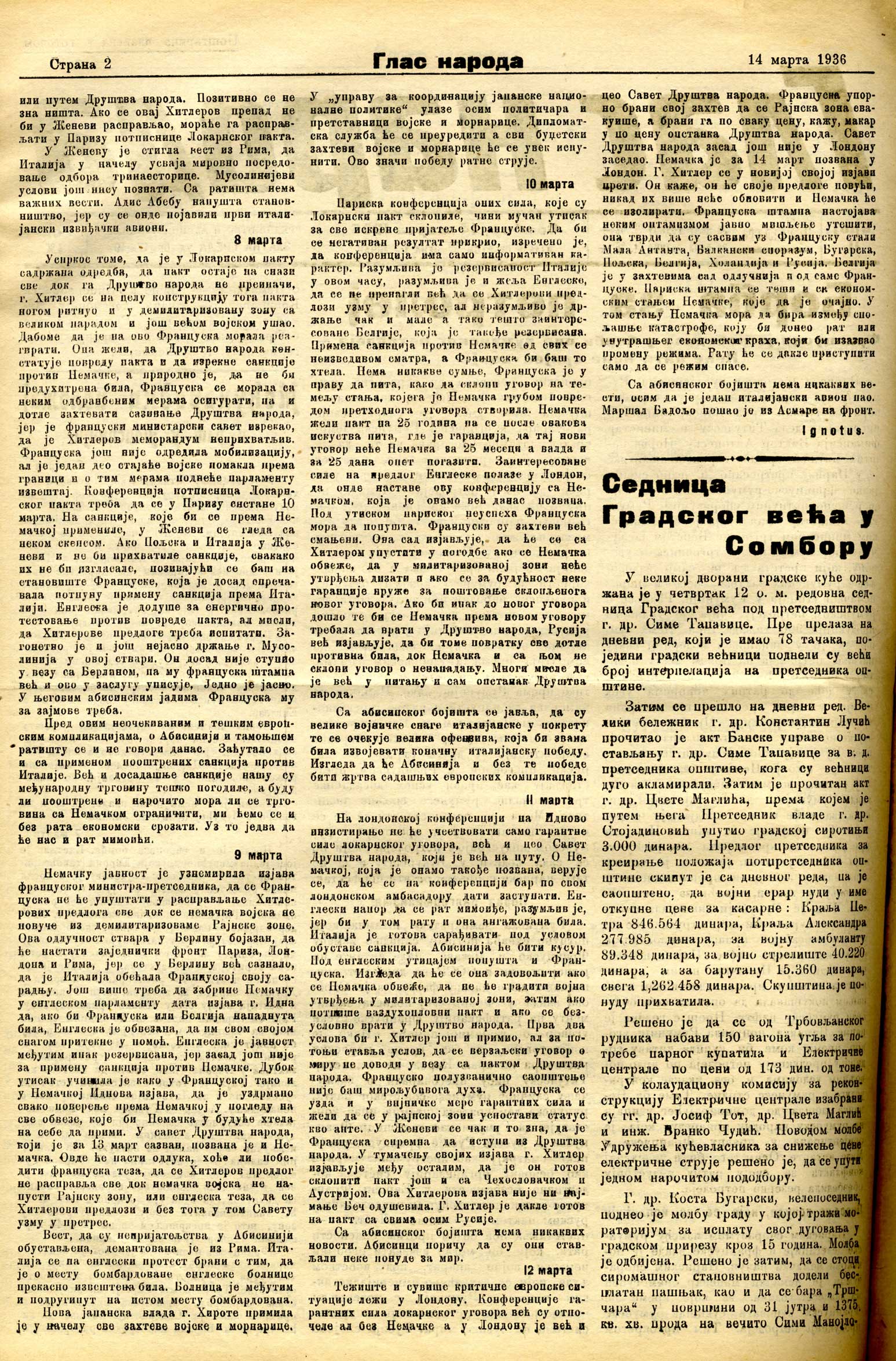 Datum izdavanja: 14. 3. 1936. , Broj: 11