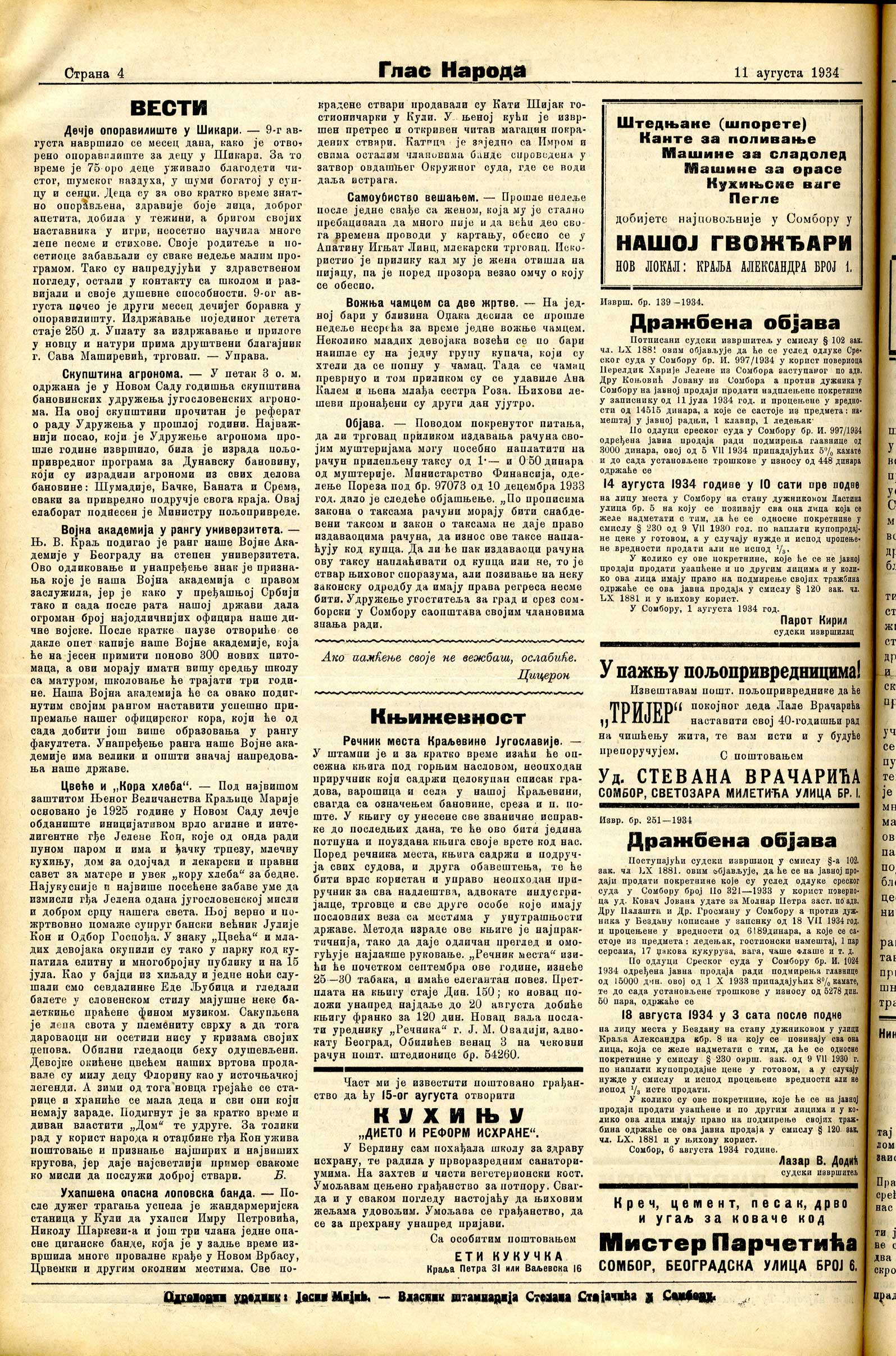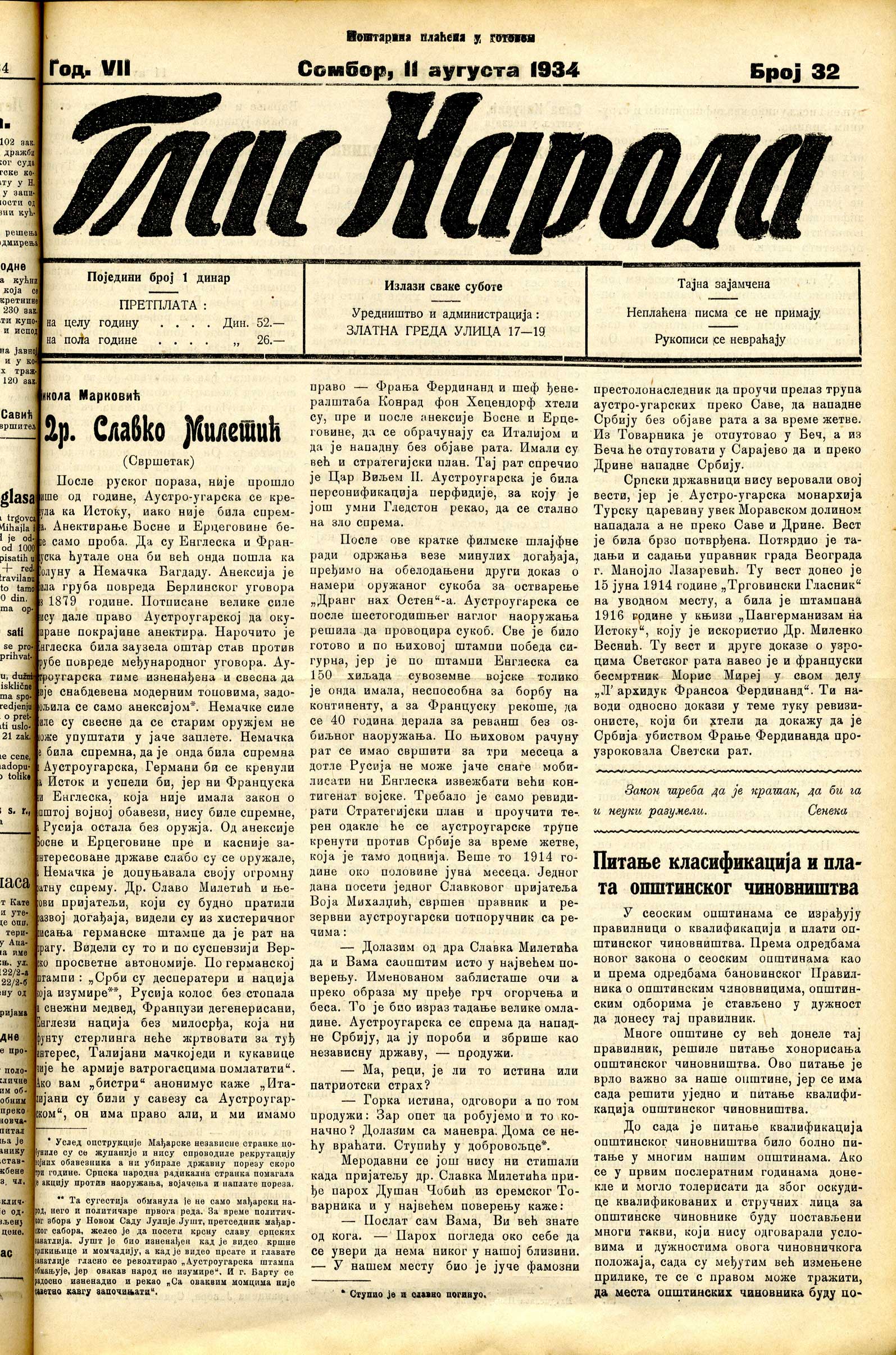 Datum izdavanja: 11. 8. 1934. , Broj: 32